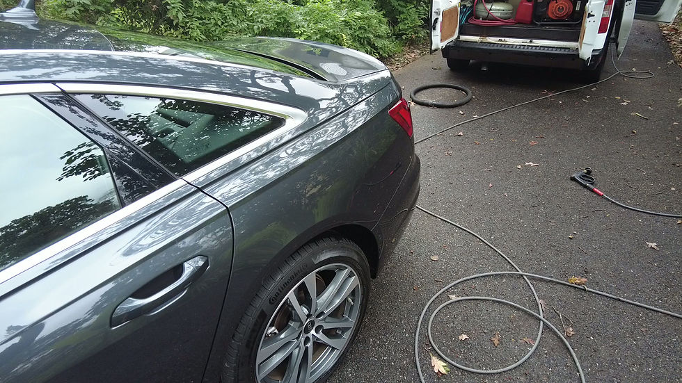 vacuum and air blow out, shampooing scrubbing and extracting of all dirt from the upholstery and carpets, leather cleaning and conditioning of only leather seats, cleaning of all plastic interior panels, windows in & out, wash car clean rims tire shine with 6 month ceramic sealant. meticulous detailing